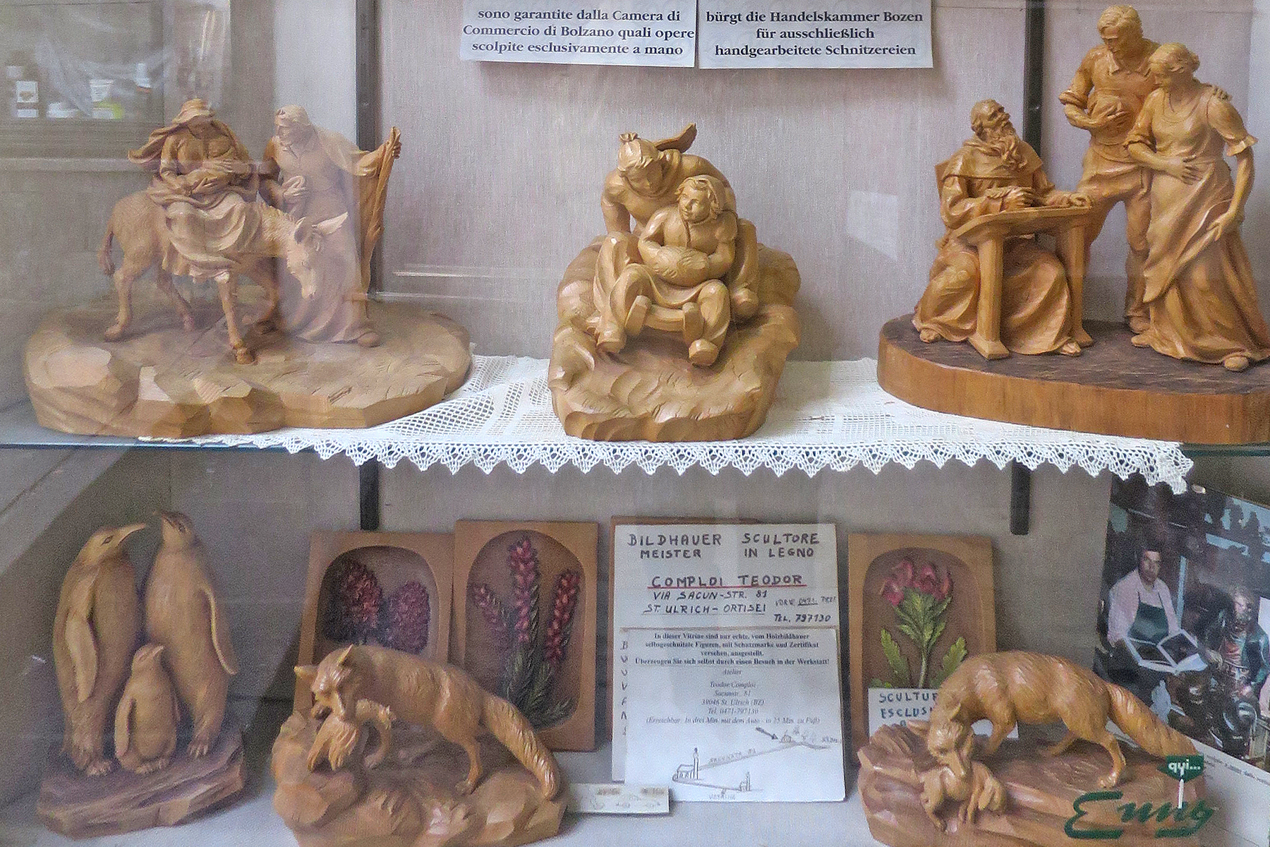 Filigran geschnitzte Kunstwerke aus Holz – vom lustigen Tierchen übers Schachspiel bis hin zur Marienfigur – sind weit über die Grenzen Südtirols bekannt. Weil wegen der Höhenlage des Tals Wein- und Obstanbau nicht möglich war, mussten sich die Grödener einst eine andere Erwerbsquelle suchen. Die war dank jeder Menge Wald schnell gefunden. Seit dem 17. Jahrhundert wird hier die Holzschnitztradition treu fortgeführt. Bestaunen und shoppen kann man die Stücke u.a. bei „La Zipla“ (Via Rezia 22) in St. Ulrich.