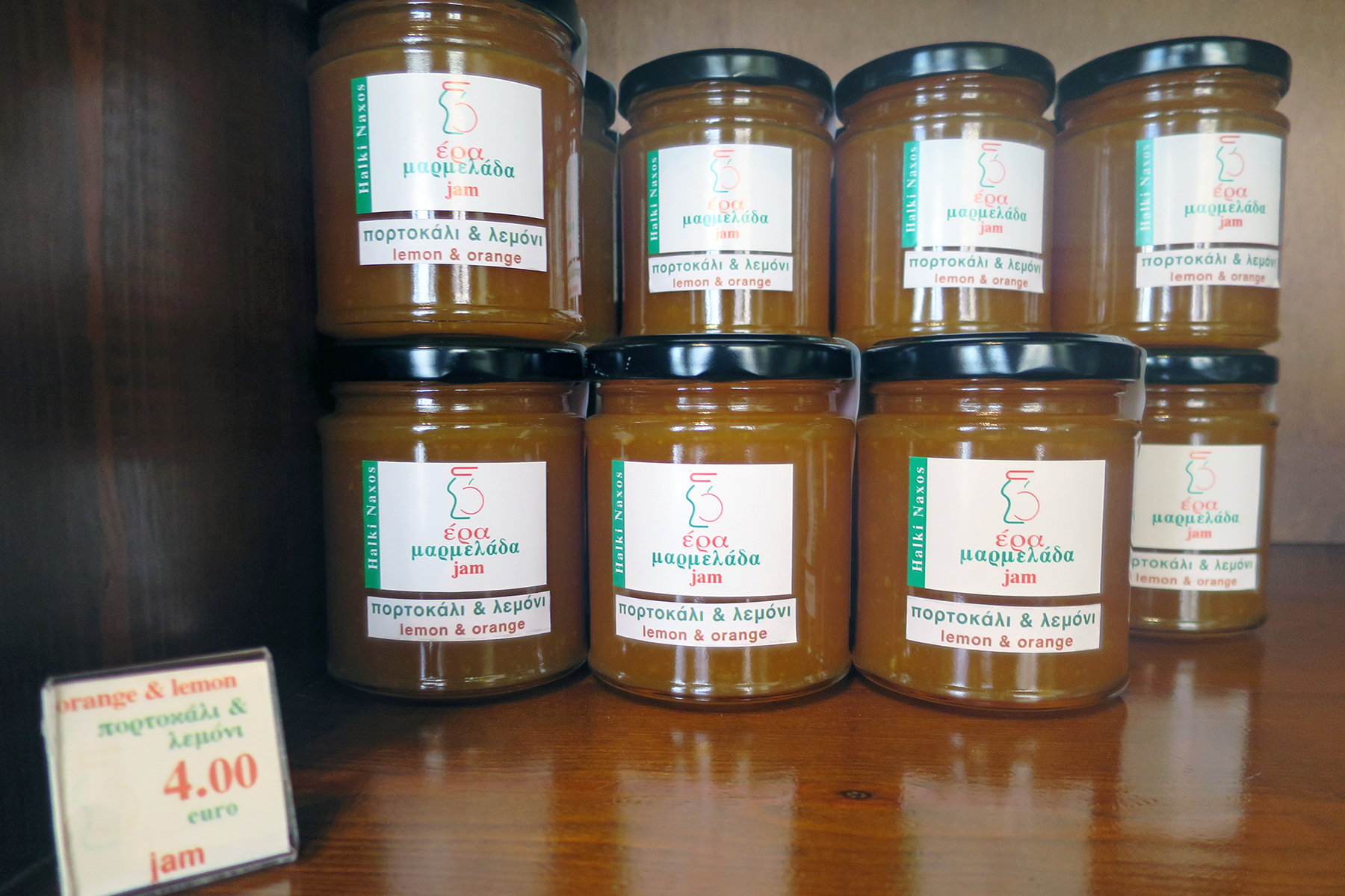 Schräg gegenüber der „Vallindras Distillery“ dreht sich auch alles um die Blätter des Zedratbaumes, allerdings in einer anderen Form. Im kleinen Shop „Era“ kann man hausgemachte Zitronenmarmelade (€ 4) kaufen, die unglaublich lecker schmeckt und auch sehr gut zum berühmten Naxos-Käse passt.